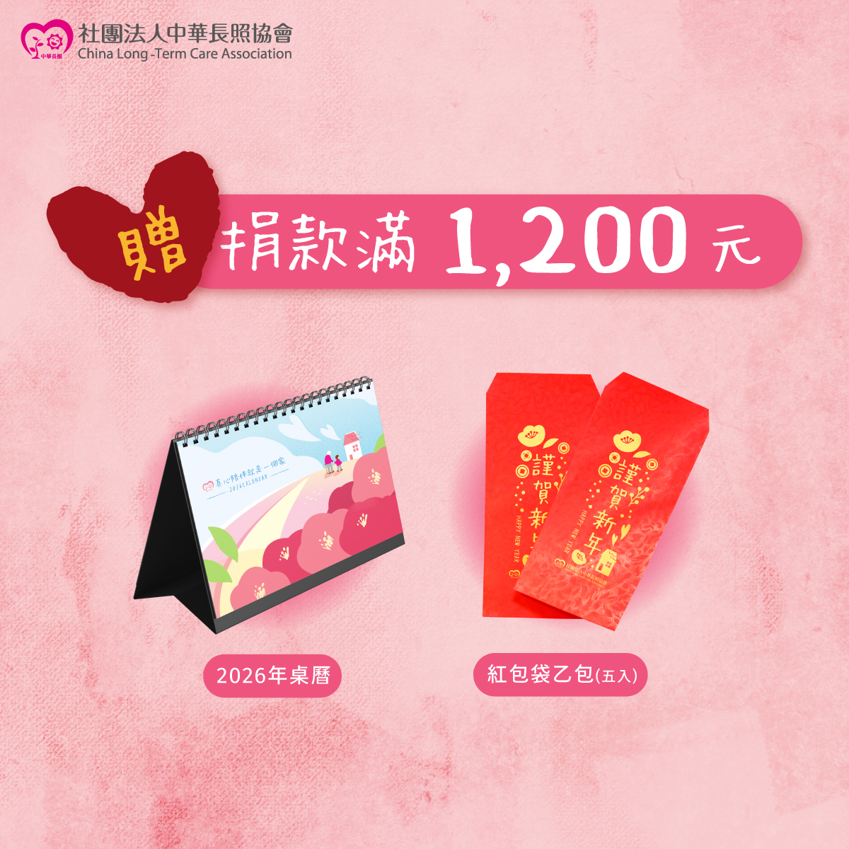 捐款滿1,200元 ►贈2026年桌曆+紅包袋一包(5入/包)