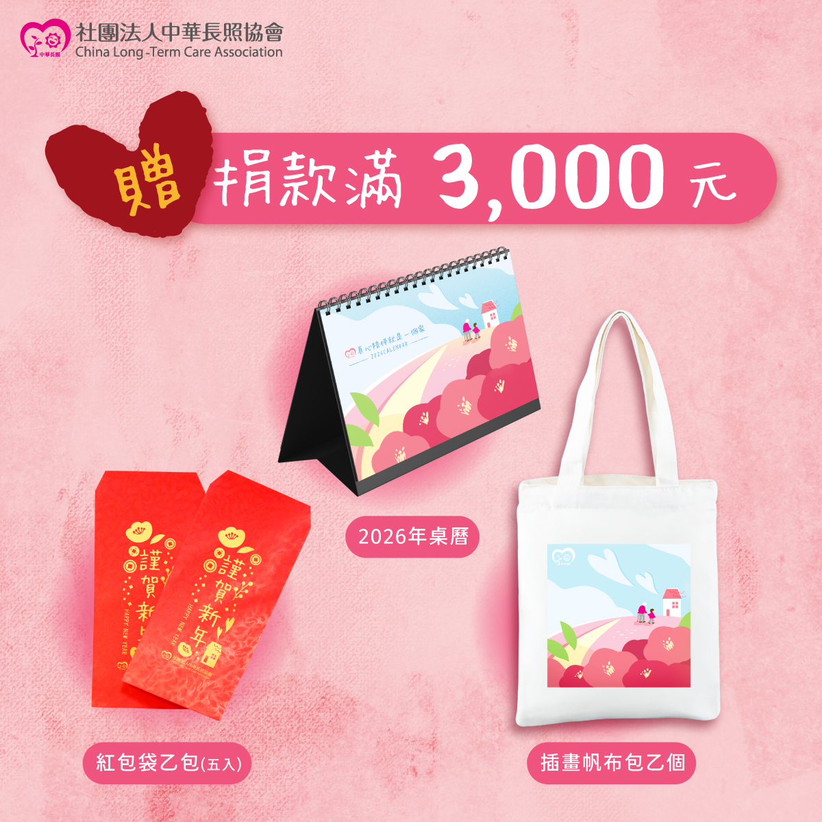 捐款滿3,000元 ►贈2026年桌曆+紅包袋一包(5入/包)+插畫帆布包乙個