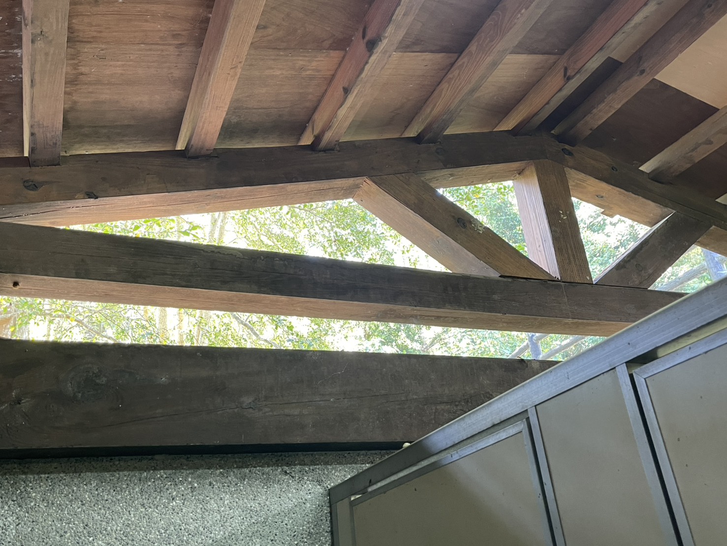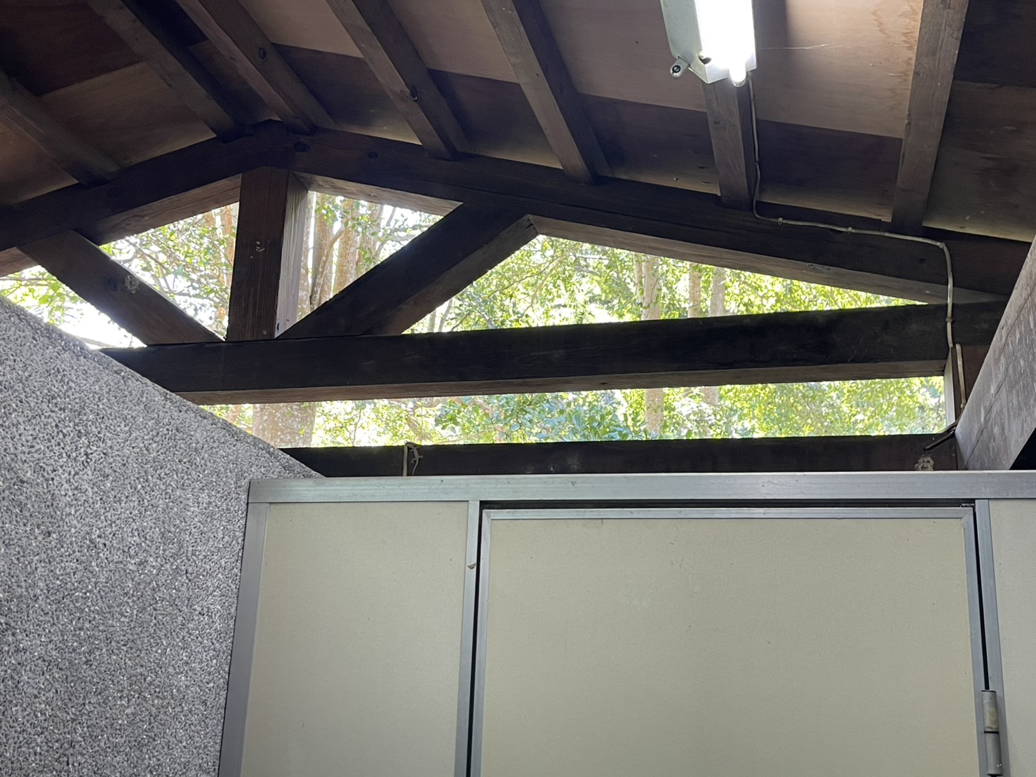 目前協會本部展示協會身心障礙者製作的手作愛心產品,同時提供居民社福諮詢、融合關懷…等服務。但是站內廁所屋頂下方空隙過大,加上廁所旁作業場所沒有屋頂,導致只要下豪大雨就會產生漏水之情形,不便進入廁所使用。而且廁所地板濕滑,增加身心障礙者、居民們滑倒的危險性。廁所與其旁邊作業場所為協會服務的身心障礙者們及前往參與活動及諮詢的居民常使用之處,不過只要一下雨,身心障礙者與居民們於該區域的危險性就會大幅增加。